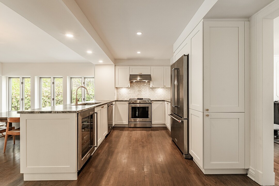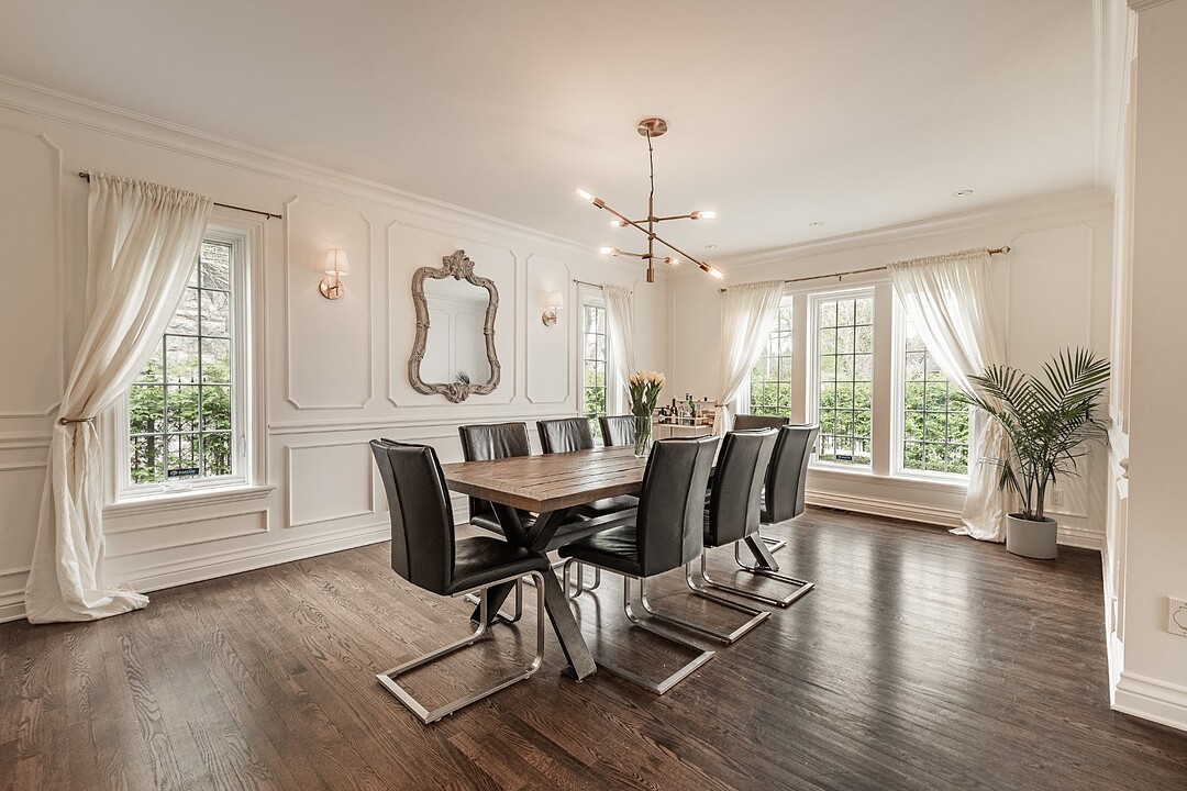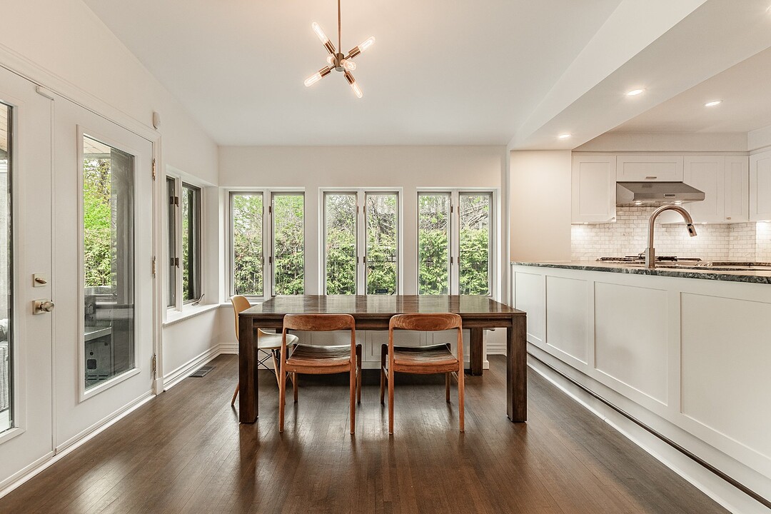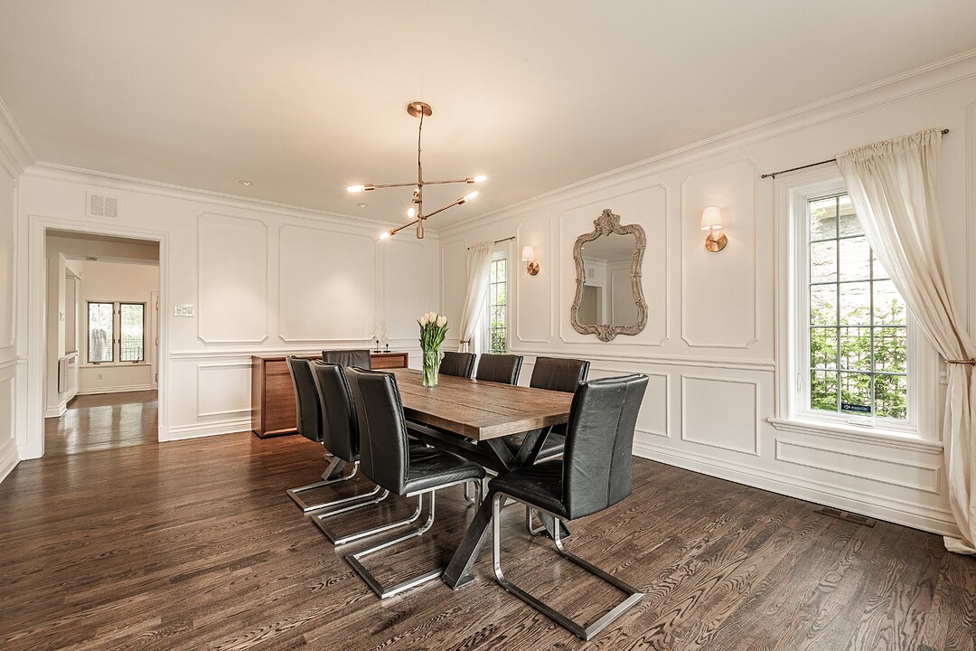 Inside, the ground floor is designed for both elegance and ease. A welcoming foyer leads to a sunlit living room with classic architectural details. The formal dining room is perfect for hosting, while the stylish eat-in kitchen opens directly to the patio and backyard--ideal for family meals and summer gatherings. A warm and refined private office overlooks the garden. A discreet powder room completes the main level.
