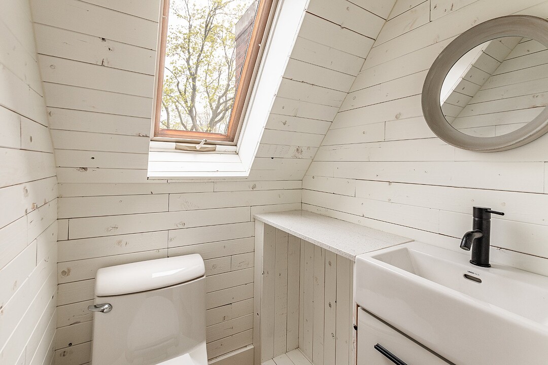 The attic level features a charming loft space, perfect as a playroom, creative studio, or sleepover haven. A convenient powder room adds functionality to this versatile level.