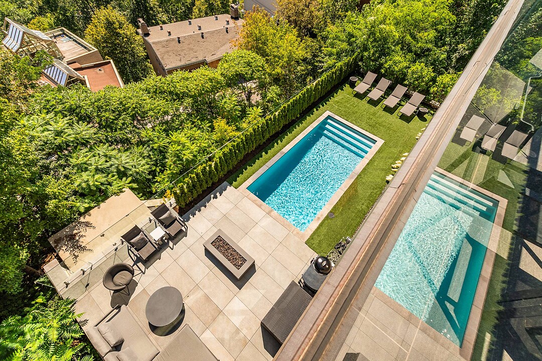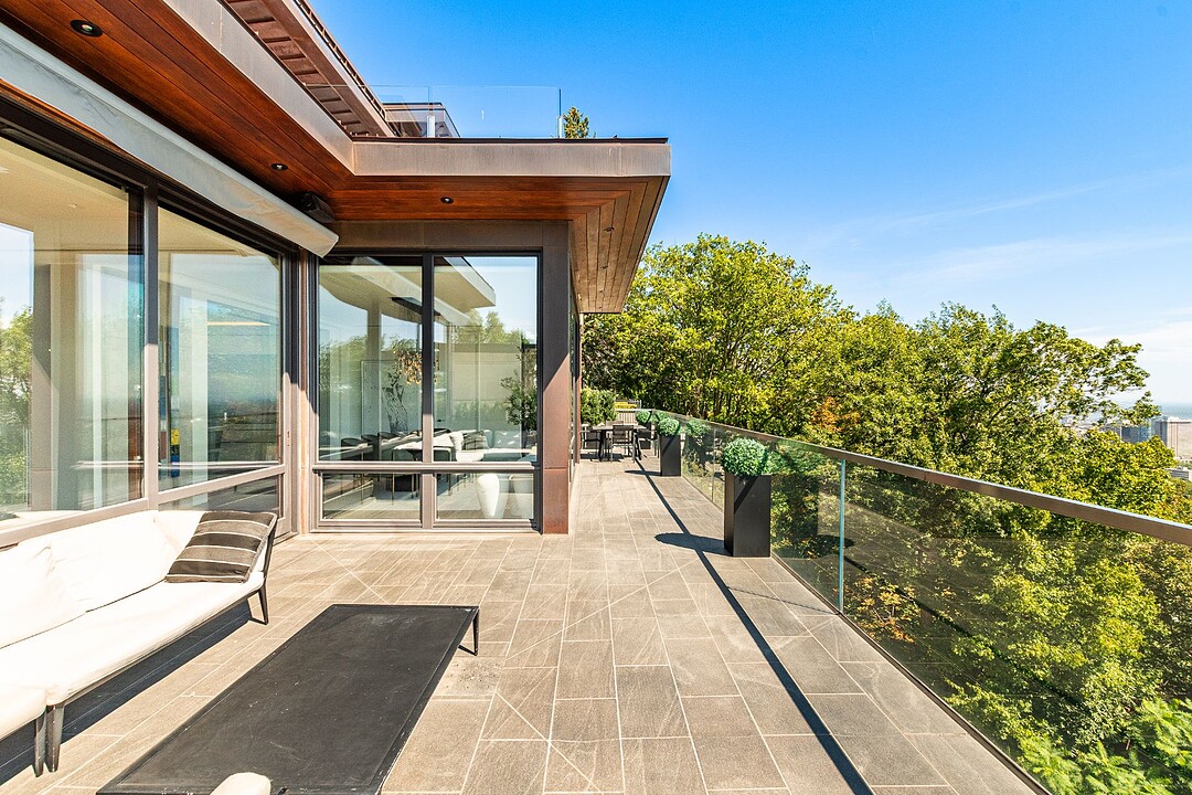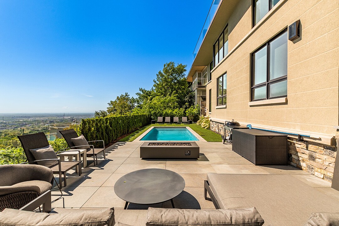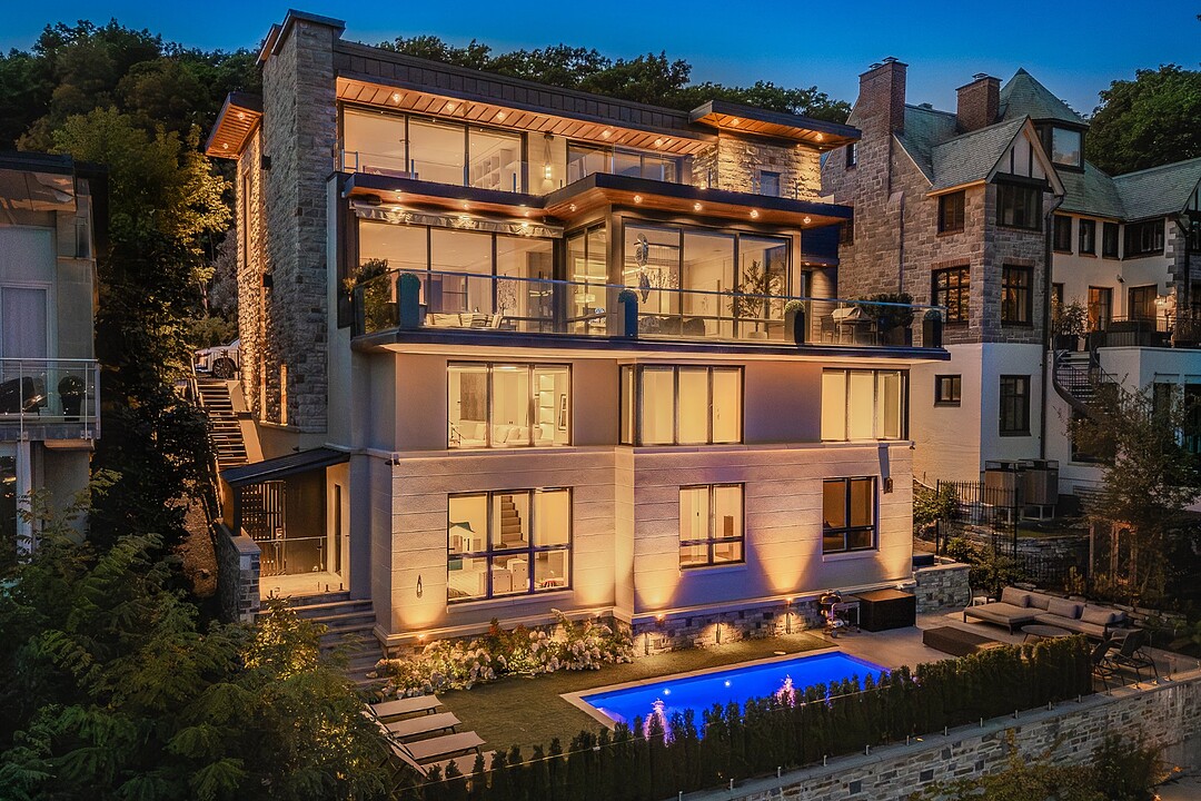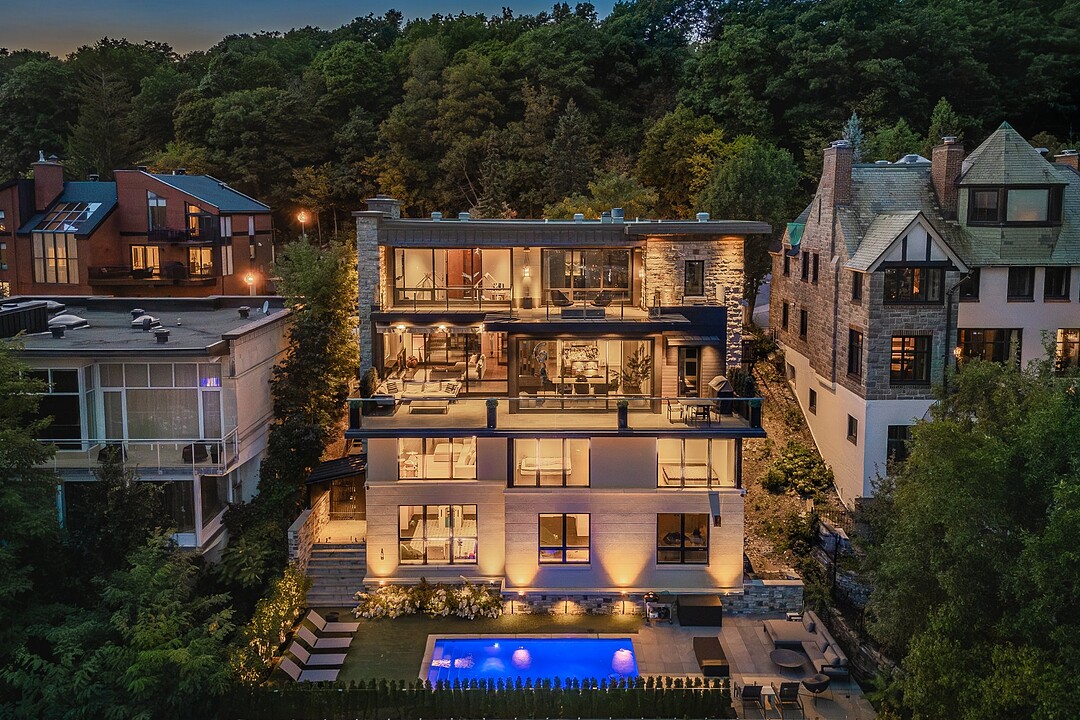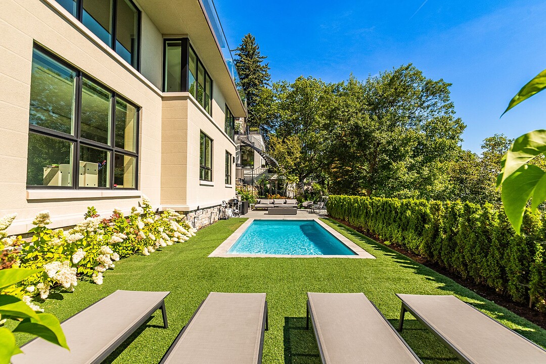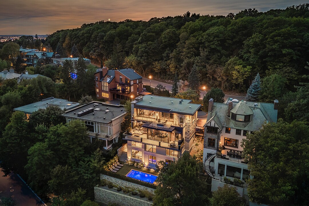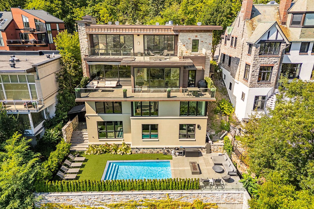 Perched on the mountain in prestigious Upper Westmount, this fully renovated contemporary home offers 4 spacious bedrooms, 5+1 luxurious bathrooms, and sweeping panoramic views of the city. Designed for modern living and exceptional entertaining, it features a large chef's kitchen, open concept living spaces, and three expansive terraces. Enjoy a private saltwater pool overlooking the skyline. This rare property seamlessly blends luxury, comfort, and lifestyle.