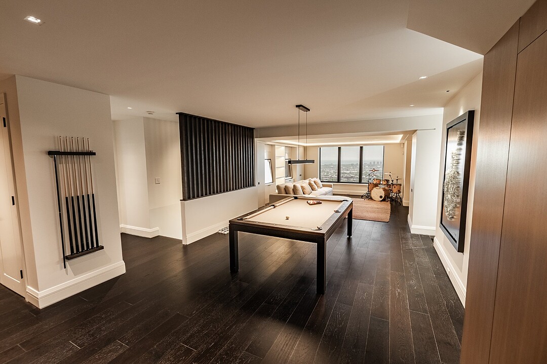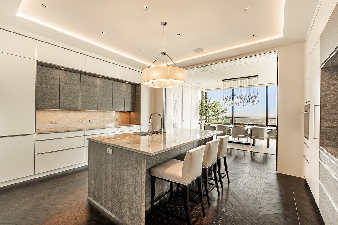 The top floor is a sanctuary reserved for the principal suite, featuring a hotel-esque bedroom with sumptuous ensuite marble-clad bath with dual vanities, expansive closets. A vast terrace off the primary bedroom is the perfect place to enjoy the southern views in peace. A luxurious den/tv room and an additional bathroom can also be found on this floor.