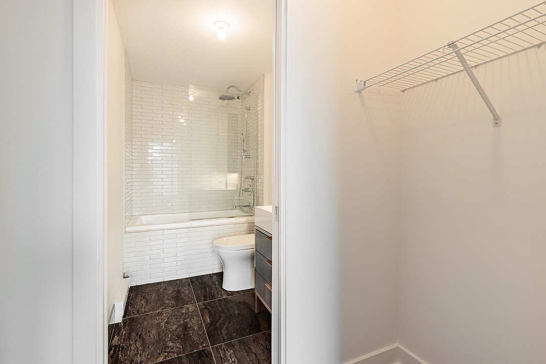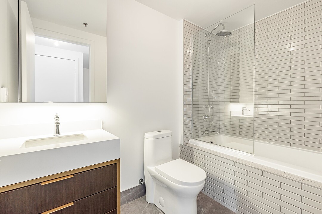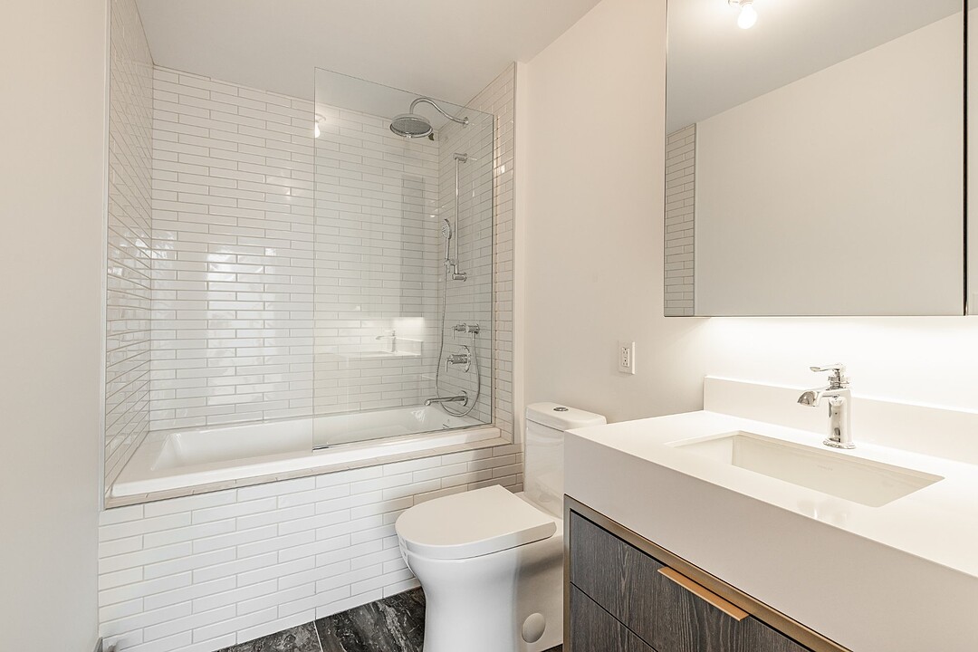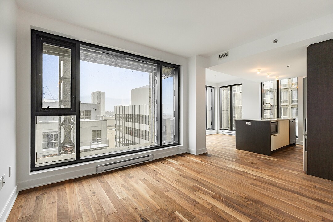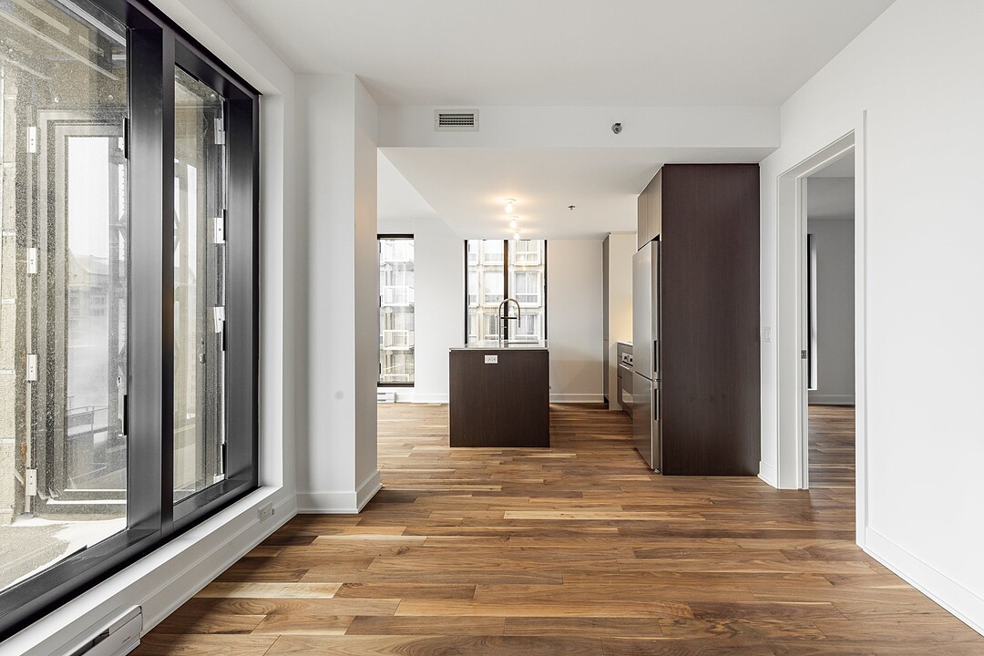 Continue readingStep inside to discover a bright and airy open-concept living and dining area, enhanced by floor-to-ceiling windows that invite natural light and offer breathtaking city views. The chic hardwood floors flow seamlessly throughout, creating an inviting atmosphere. Enjoy your own private terrace, perfect for entertaining or unwinding after a long day. With the unit positioned on the quiet side of the building, you'll experience serene living amidst the vibrant city.