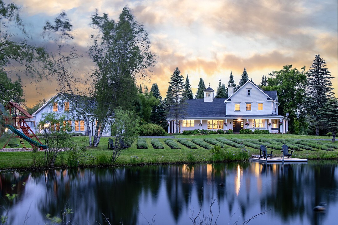 Nestled on a beautifully landscaped 5.5-acre lot, this stunning farmhouse-style home--affectionately known as the Joie de Lavande Farm--offers an ideal setting for family life in the Townships. Perfectly located just steps from the picturesque village of Knowlton, the residence features four spacious bedrooms and three full bathrooms plus a powder room. Thoughtfully designed by architect Johanne Béland, the home balances timeless charm with functional living. The enchanting surroundings, complete with a private pond and stream, create a peaceful, storybook atmosphere. It's no surprise the property was even selected as the set for filming.