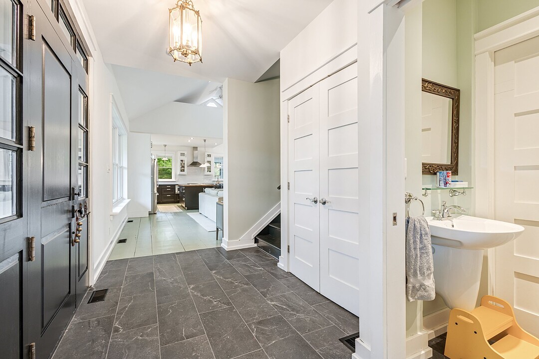 4. Resurfaced and painted the living room floor and re-tiled the entrance, back entrance, and powder room.