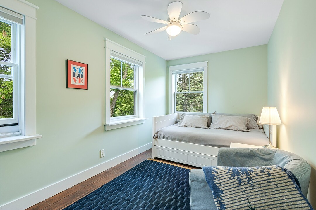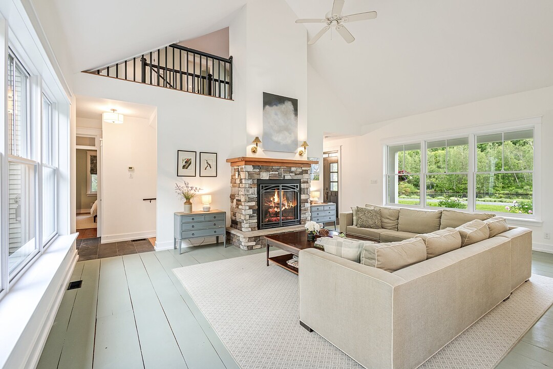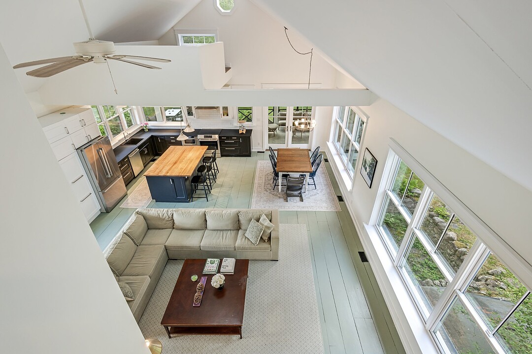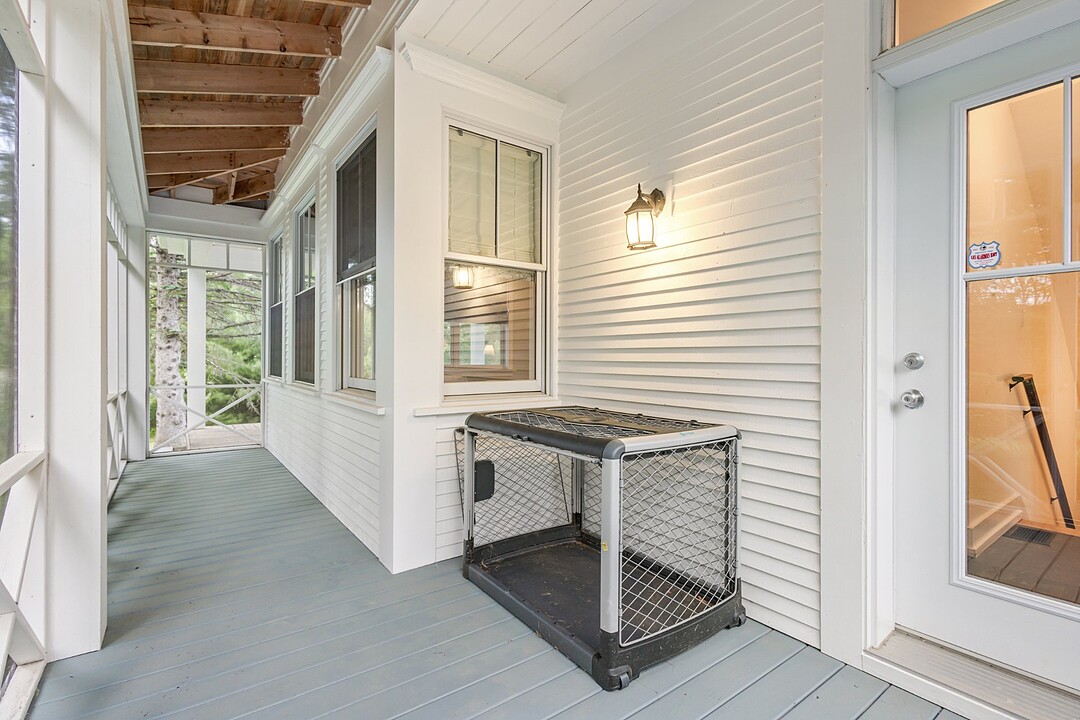 The handcrafted home exudes warmth with its open layout, cathedral ceilings, and a main-floor primary suite with an ensuite, perfect for one-level living. A screened-in porch extends the living space, providing a tranquil spot to enjoy the outdoors in comfort. Additional bedroom areas on the upper and lower levels ensure space and privacy for all.