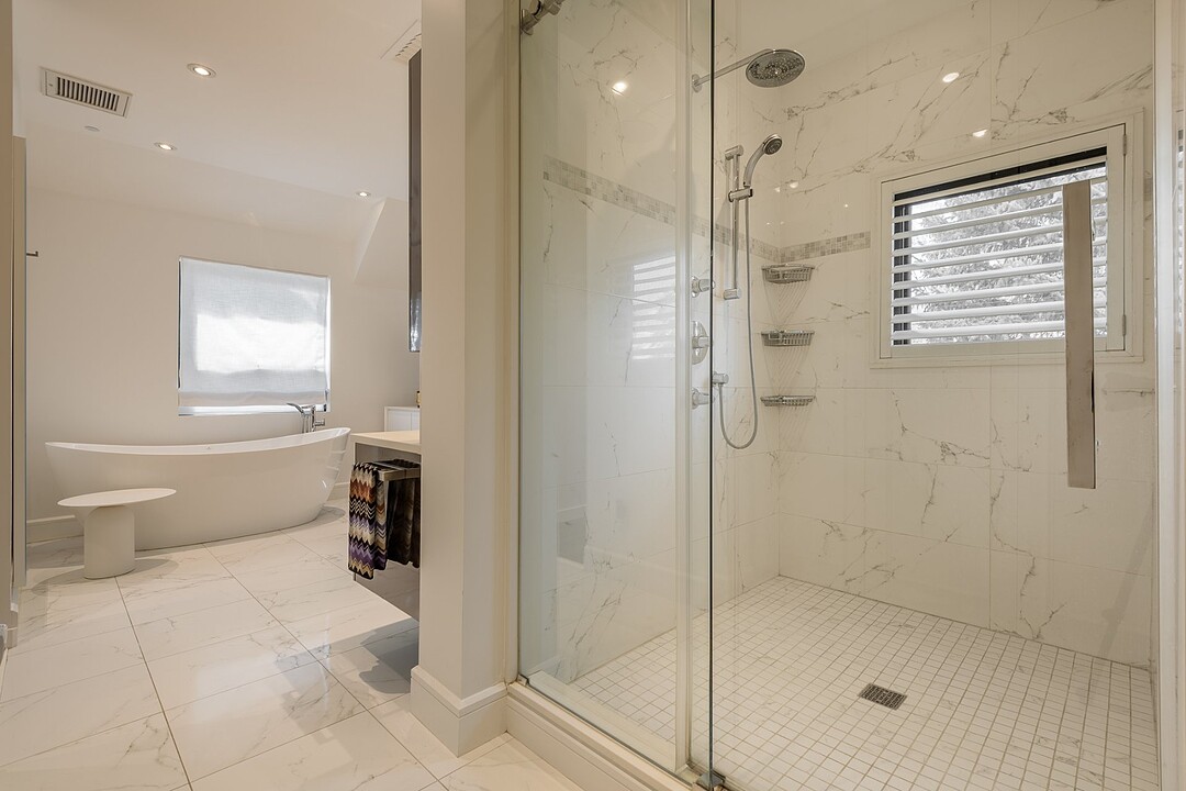 This stunning, newly reimagined transitional Hampstead home sitting on a prime double lot, presents a sleek, polished design that impresses in its minimalist opulence and tasteful grandeur. Enter into a welcoming foyer, and you will immediately be immersed in the fine materials that have been sourced to curate a magnificent design experience. Expansive and contemporary, the interior offers open spaces that flow together seamlessly, offering magnificent light and tranquil indoor outdoor living.