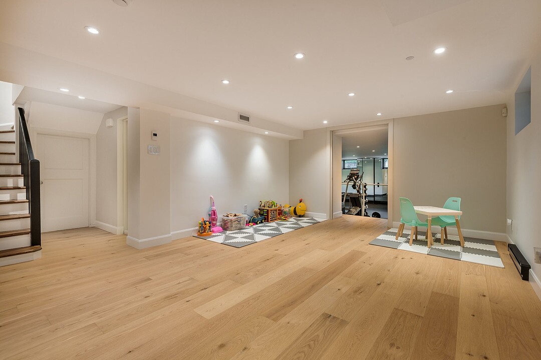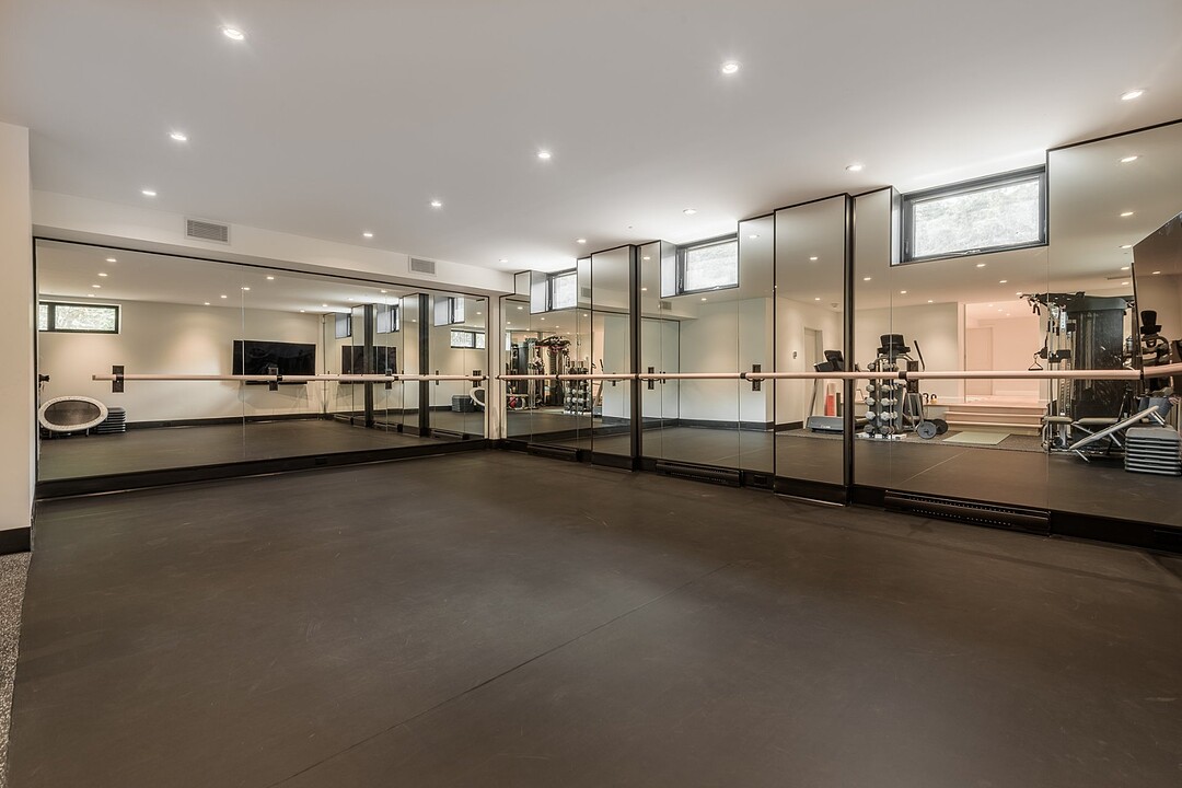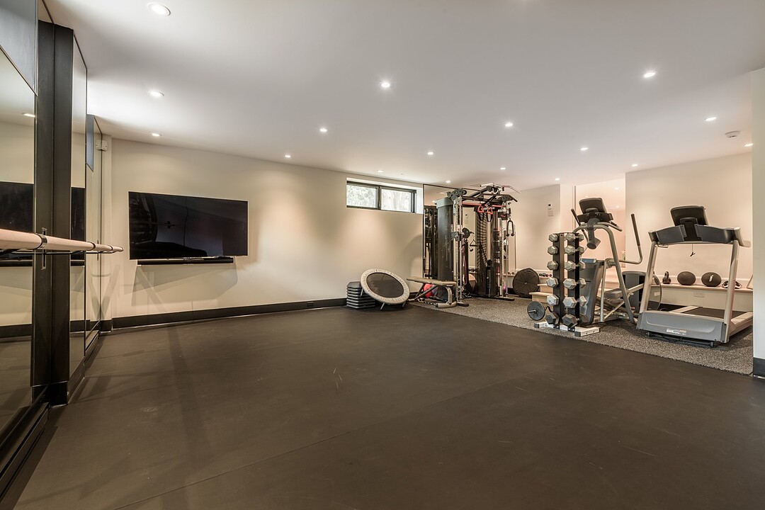 The bright basement features a spectacular fully equipped mirrored gym complete with ballet bar, special flooring and a separate weight area. A lovely playroom area for children, a laundry room and full bathroom completes this floor.