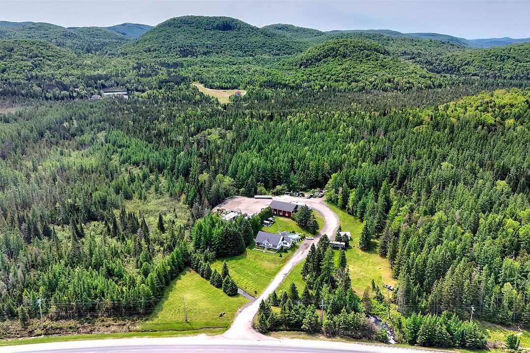 The land allows for potential direct access to Route 117, a major artery through the Laurentians, offering excellent visibility and connectivity. Adding to its unique value, the estate includes a private airstrip with a 1,550-foot grass runway and clearance, ideal for small aircraft. The existing hangar structure houses a charming bistro, an office, and an aircraft shed--perfect for aviation enthusiasts or entrepreneurs seeking a one-of-a-kind destination property.