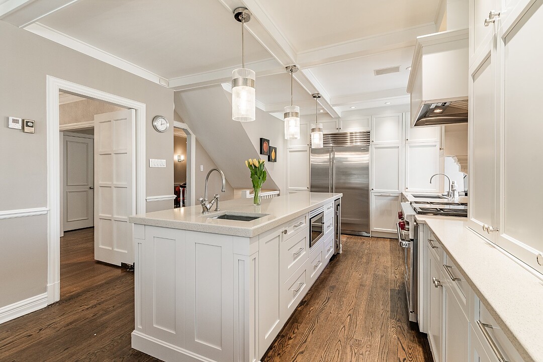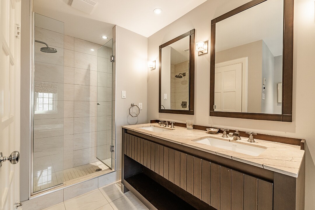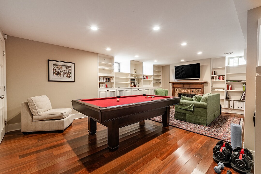 The lower level of this exceptional residence offers an expansive playroom, perfect for family fun, along with a gym that can easily be converted back into a bedroom. A superb wine cellar and ample storage space complement the laundry room/powder room, while convenient exterior access to the backyard adds practicality.