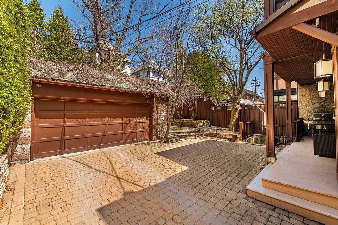 For those who value outdoor living, the fully paved backyard is a tranquil oasis, ideal for relaxation or al fresco dining under the shade of mature trees. The property also features a detached double garage providing ample indoor parking, while the expansive driveway accommodates four or more vehicles with ease.