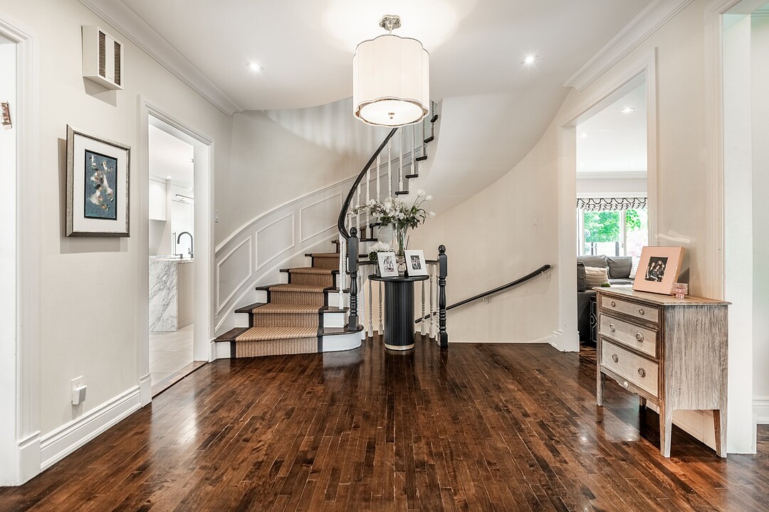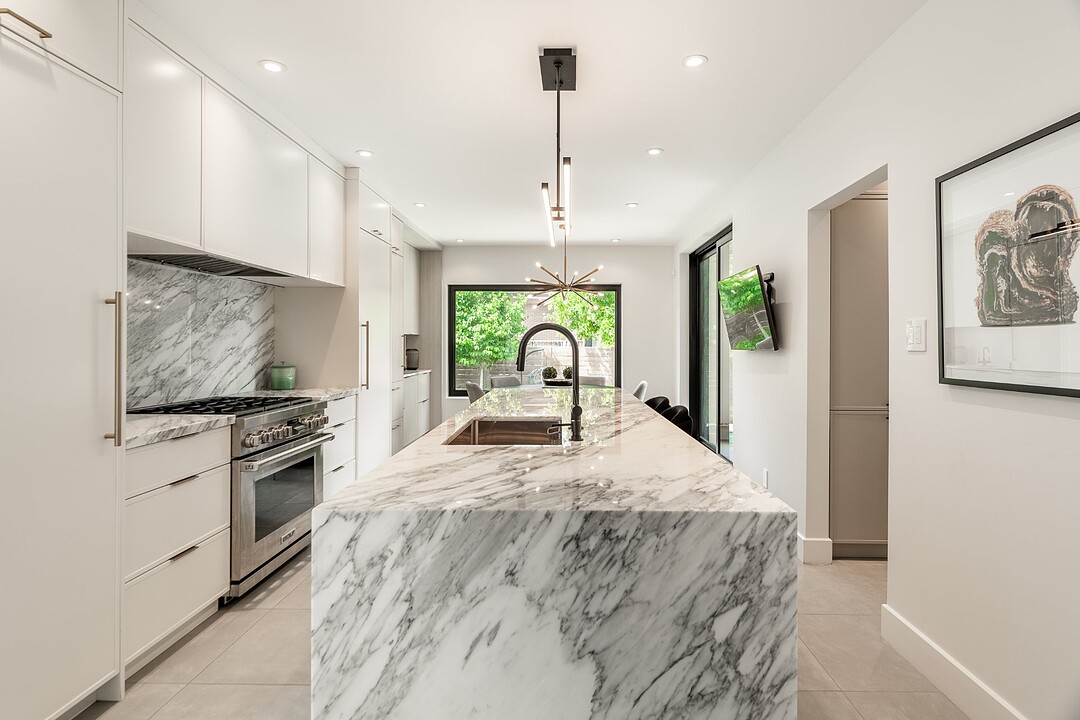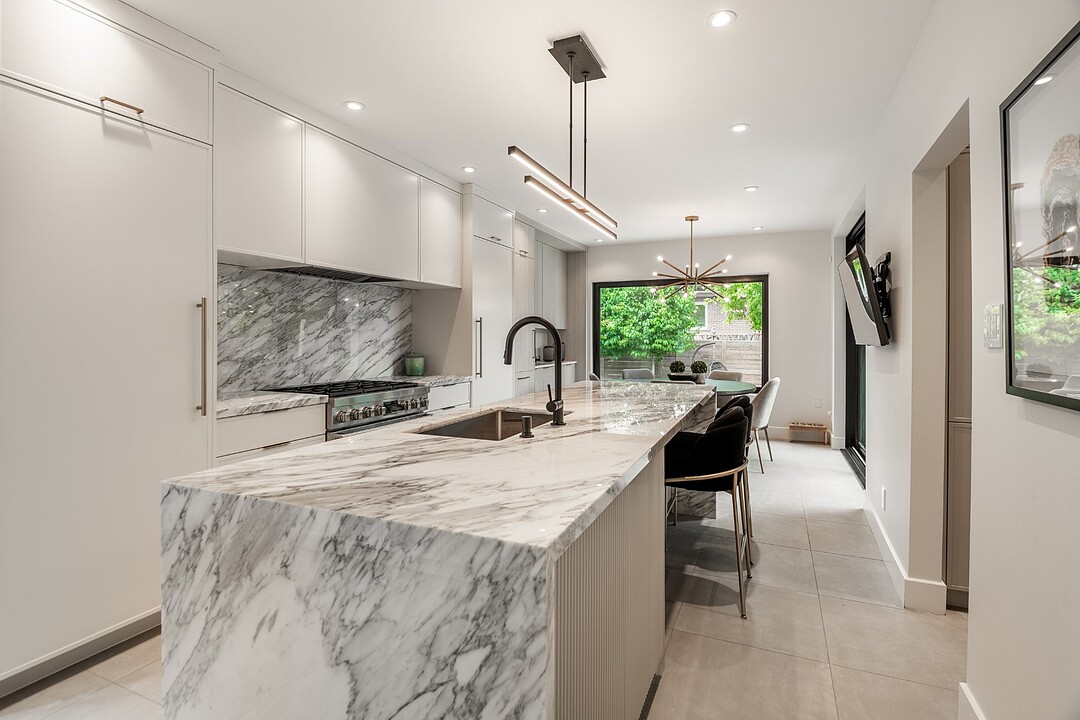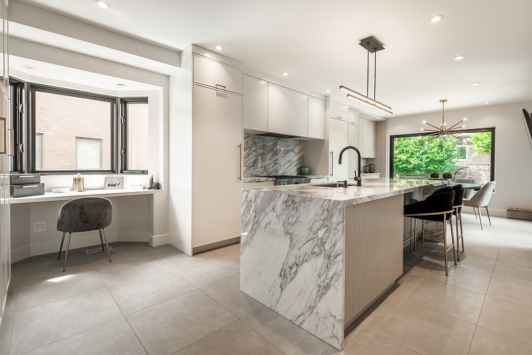Continuer la lectureL'espace de vie principal propose un plan croisé, offrant à la fois un salon spacieux et un espace de détente confortable, idéal pour se détendre ou recevoir. La salle à manger classique-contemporaine offre un cadre idéal pour des dîners mémorables, alliant élégance à une atmosphère chaleureuse et accueillante. La cuisine, récemment rénovée, est un rêve pour tout chef. Elle est équipée d'appareils électroménagers haut de gamme, dont un réfrigérateur Sub-Zero, une cuisinière et four à gaz Wolf, ainsi qu'un lave-vaisselle Bosch. Beaucoup d'espace de rangement et une vue pittoresque sur l'arrière-cour complètent ce magnifique espace fonctionnel. Adjacente à la cuisine, la salle de lavage offre une commodité supplémentaire.