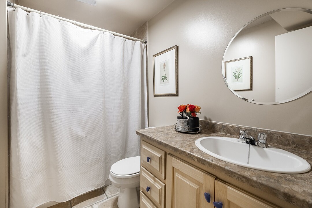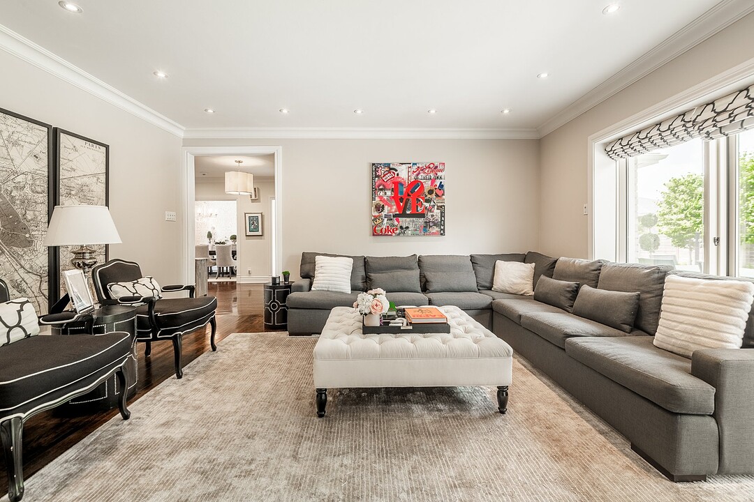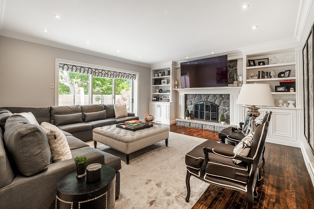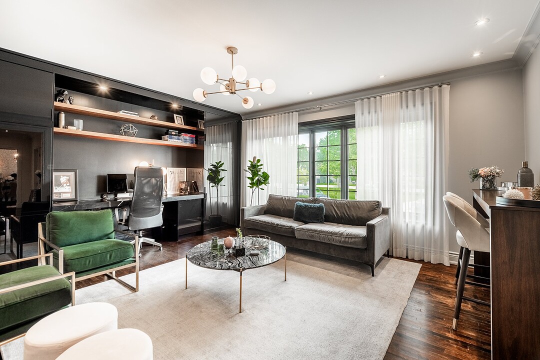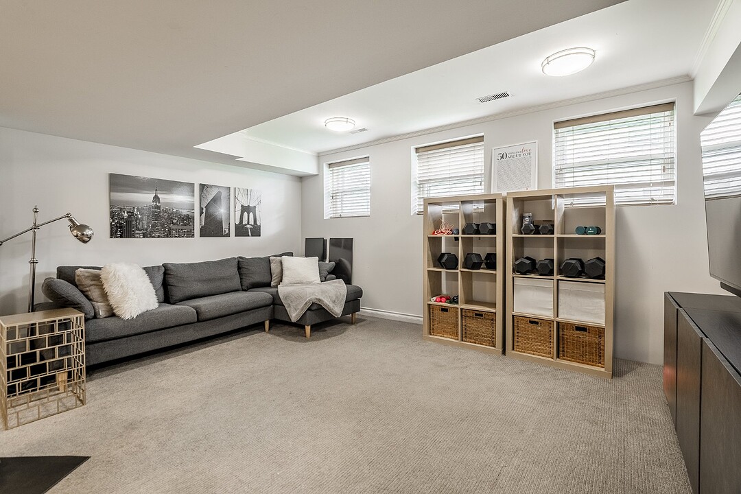 Le sous-sol aménagé a été conçu de manière à pouvoir être utilisé à diverses fins, qu'il s'agisse d'une salle de jeux, d'un gym ou d'une salle familiale. Il comprend également une chambre supplémentaire, une salle de bain complète et accès au garage pour deux voitures.