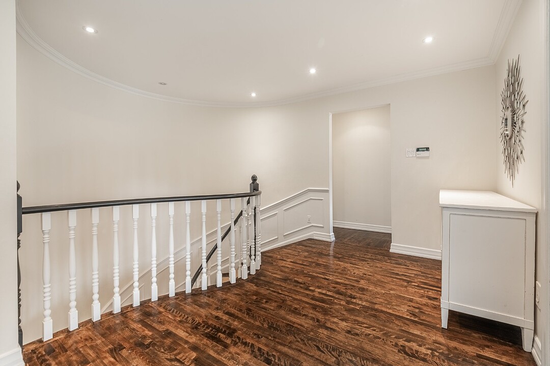 Un élégant escalier circulaire mène au niveau supérieur, où se trouvent trois chambres à coucher de bonne taille, une généreuse salle de bain familiale, un bureau et une majestueuse suite principale. Cette dernière comprend une penderie et une luxueuse salle de bain attenante, offrant ainsi un véritable refuge. Le dernier étage est une caractéristique remarquable, car il offre suffisamment d'espace pour les grandes familles.