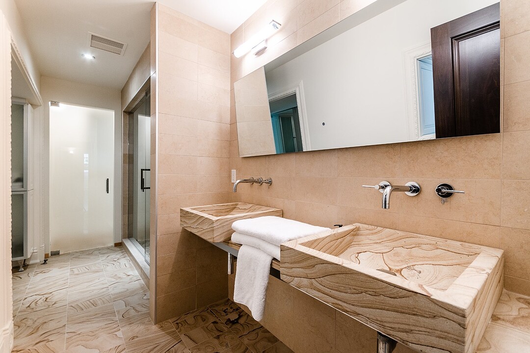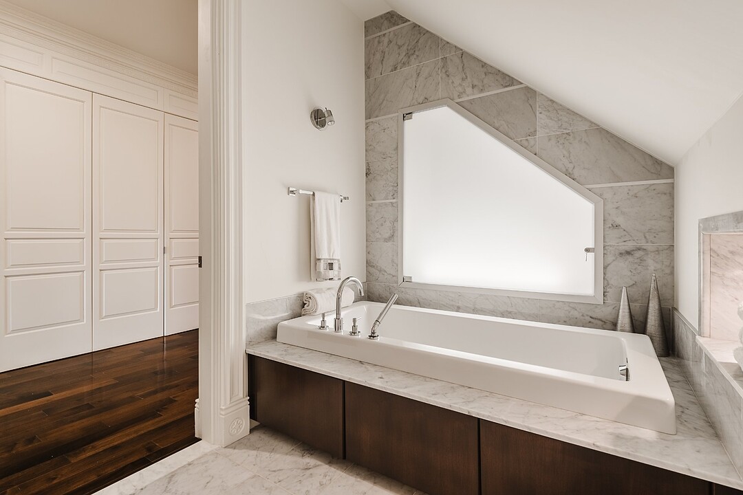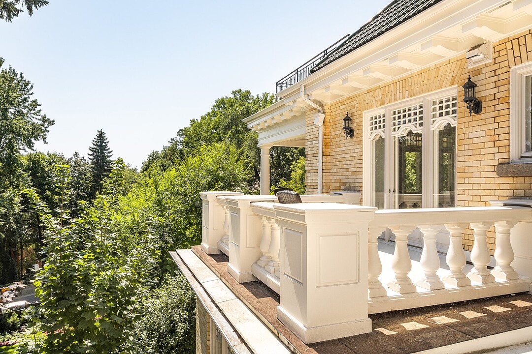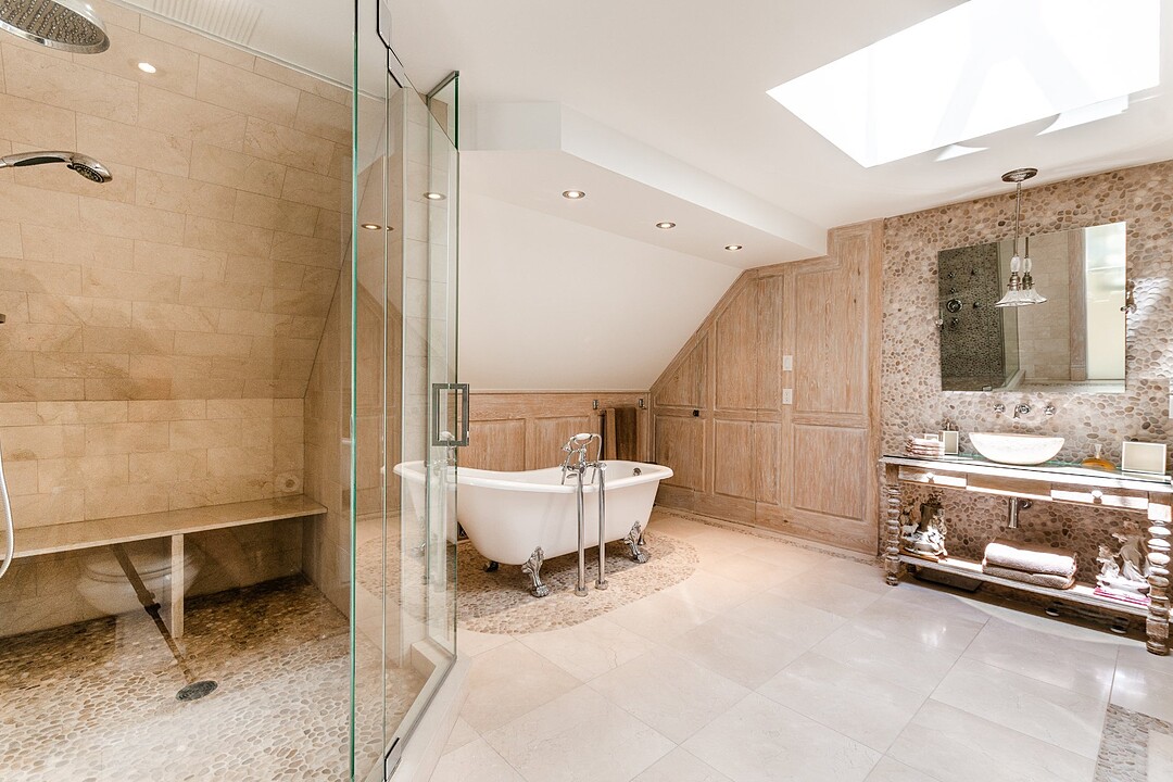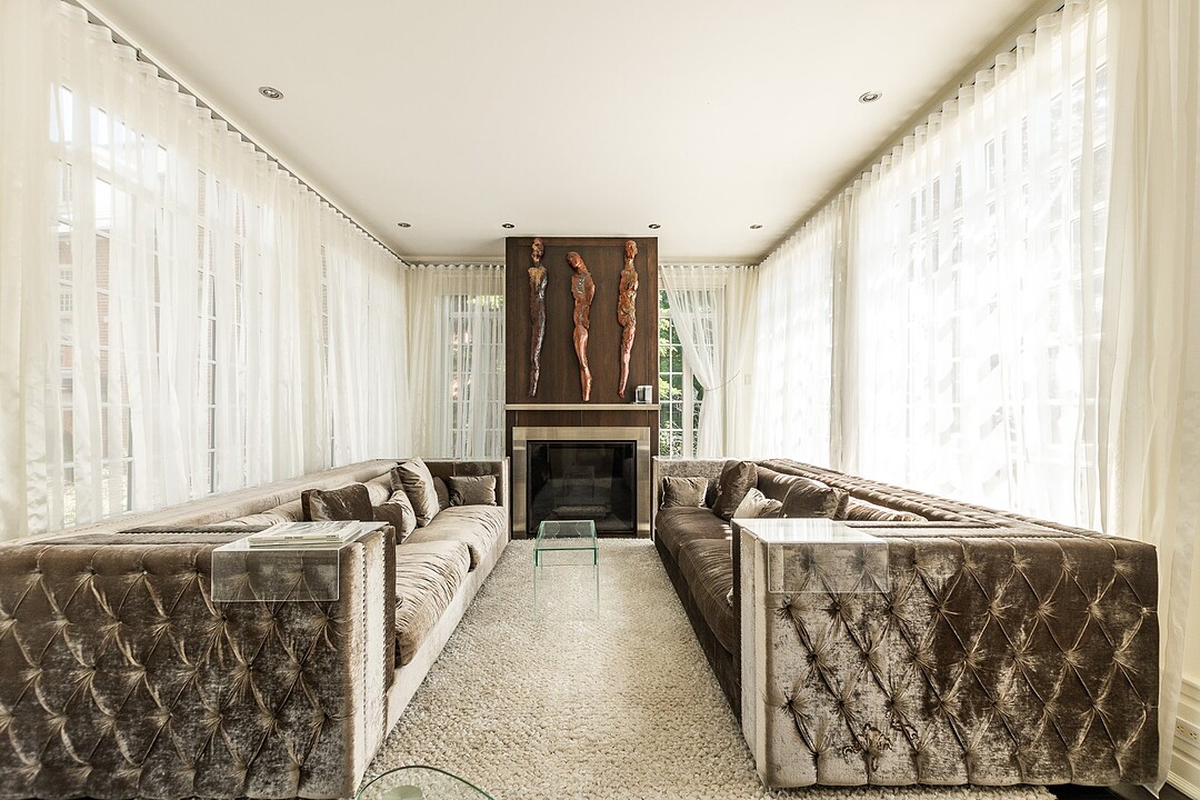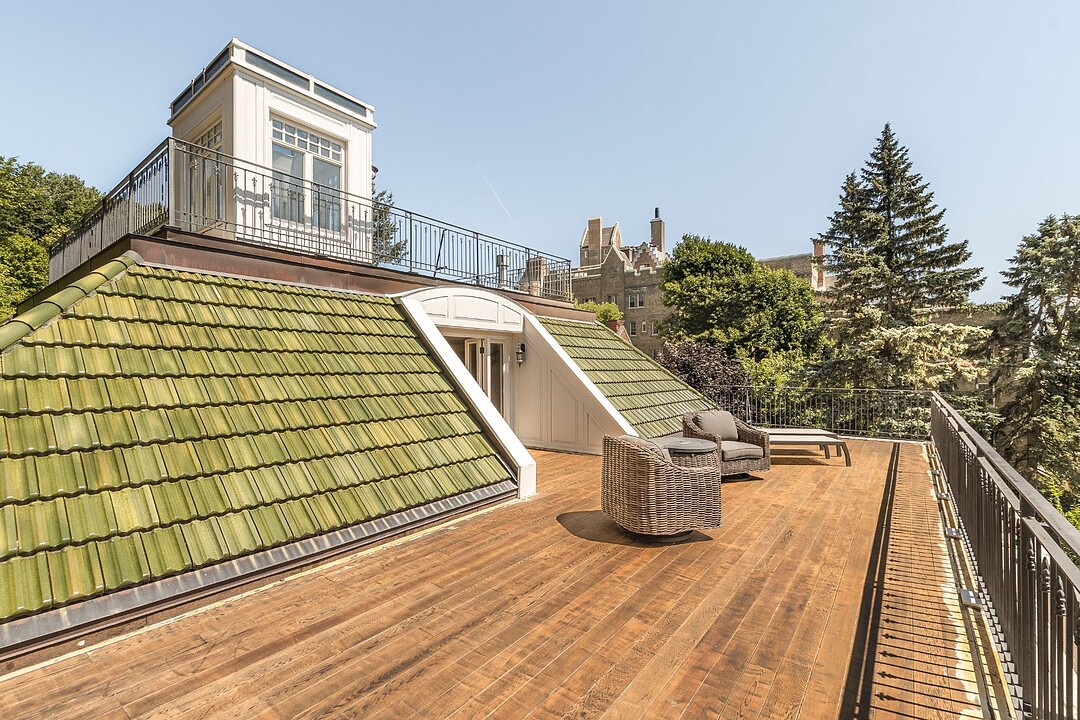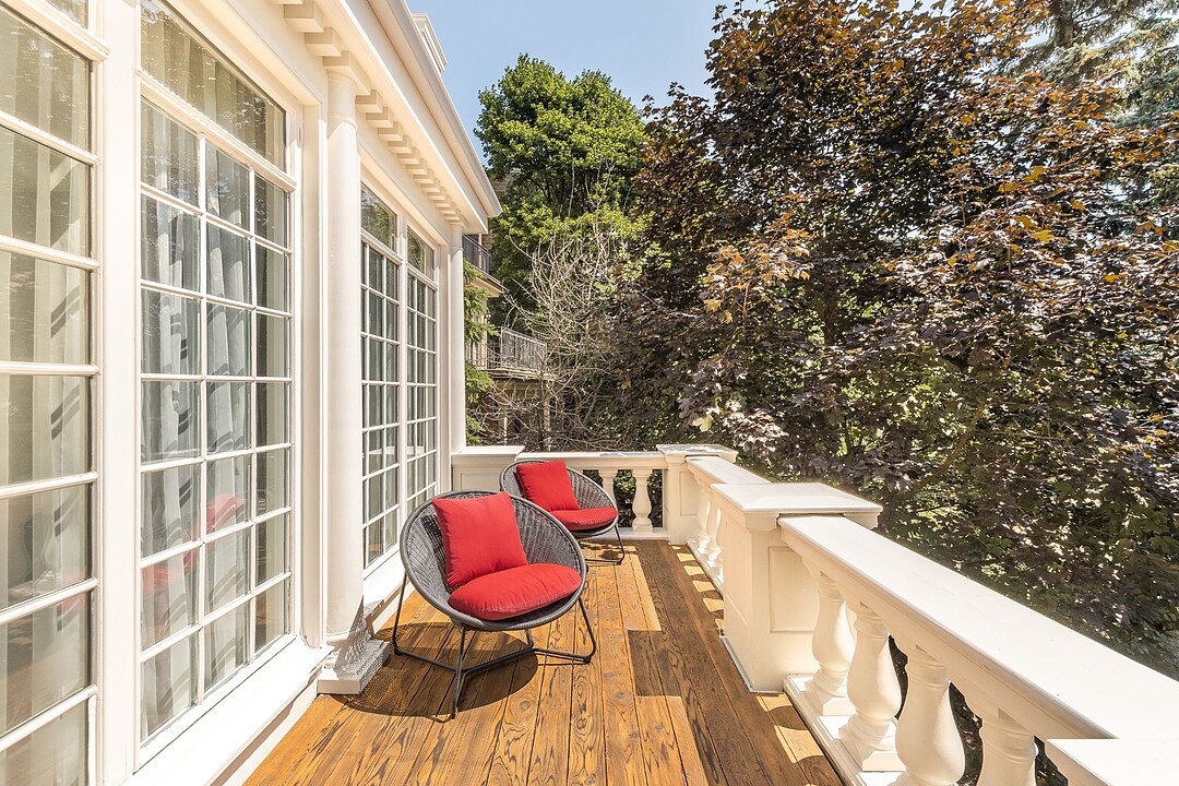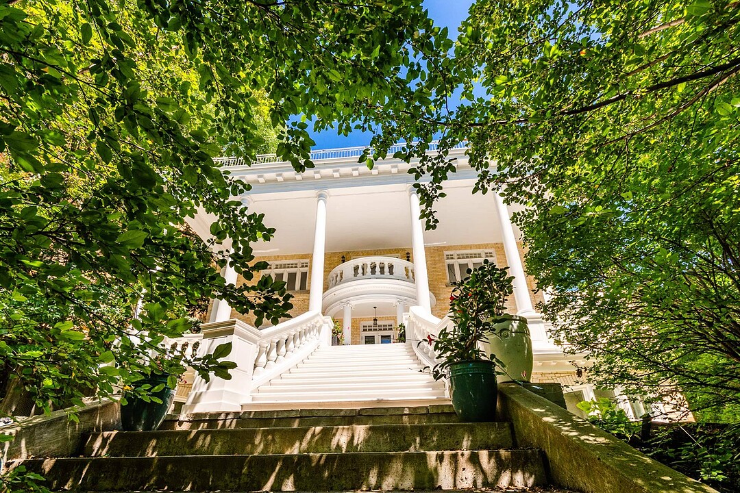 *Deuxième étage* La première chambre donne sur l'avant de la résidence et partage une salle de bains avec la deuxième chambre arrière tout aussi spacieuse, qui offre une vue sur les jardins et la ville au-delà. La suite principale est à couper le souffle : avec son propre balcon, une immense cheminée à gaz à côté du lit, une vue directe sur la galerie arrière, ses colonnes incroyables et les jardins au-delà. Elle mène au dressing avec monte-plats intégré, et à la salle de bains principale avec salle de toilette et bidet, espace maquillage, magnifique baignoire de style infinity, douche à vapeur et encore une autre cheminée. Les salles de bains on des planchers chauffants.