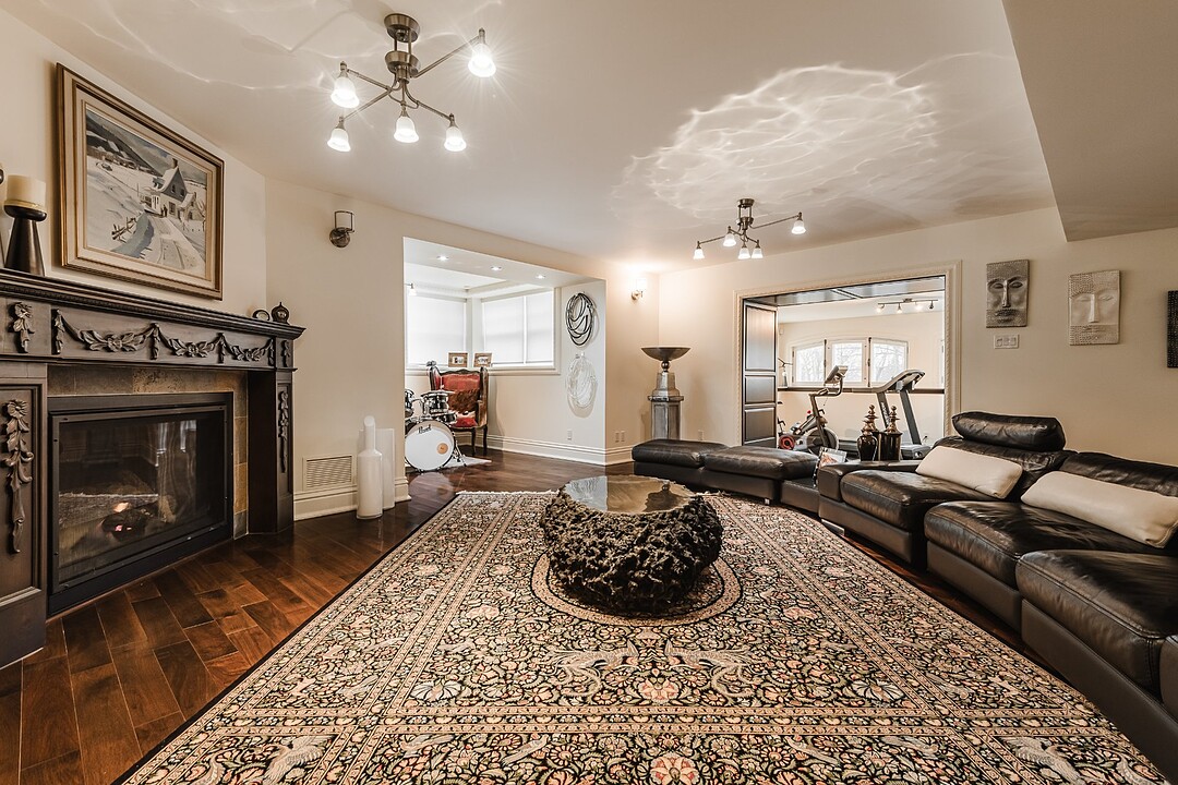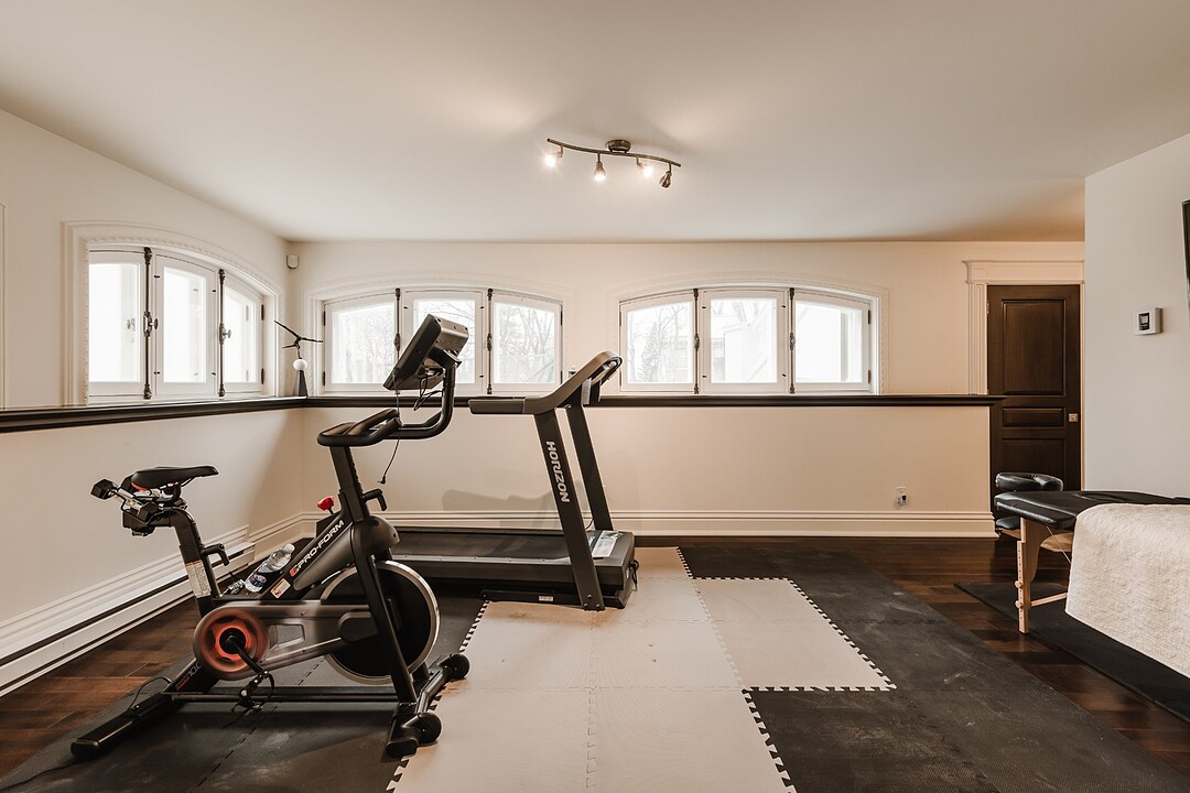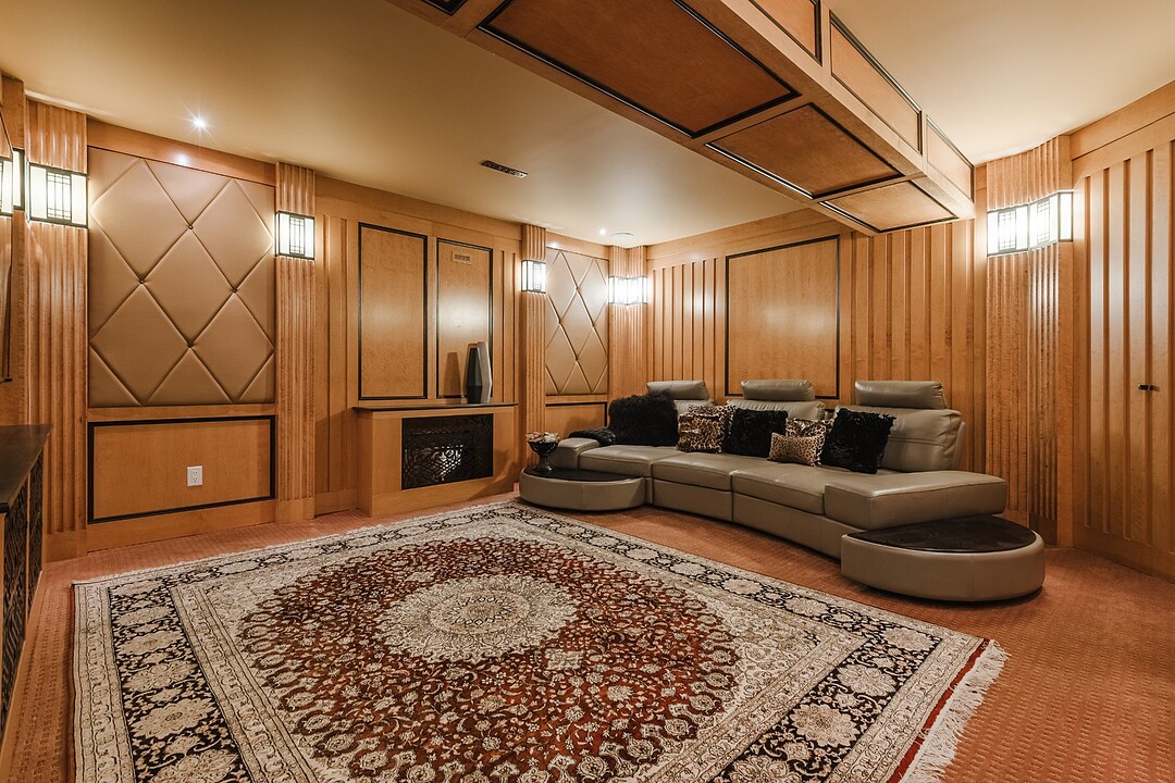 *Sous-sol* Une salle de cinéma sur mesure est un spectacle à voir. Cet étage contient également une immense salle familiale, un coin salon, une possible deuxième salle de bureau, une salle de sport ou un studio de danse relié à une autre salle de bain avec douche à vapeur, une buanderie et des quartiers du personnel avec une salle de bains.
