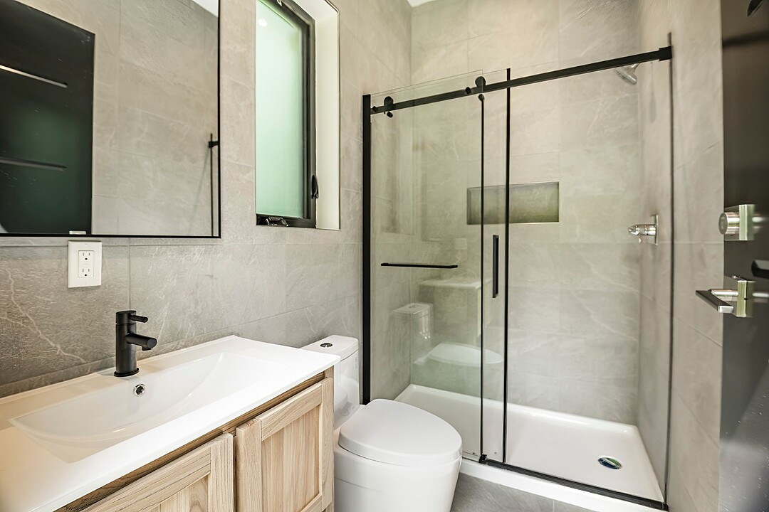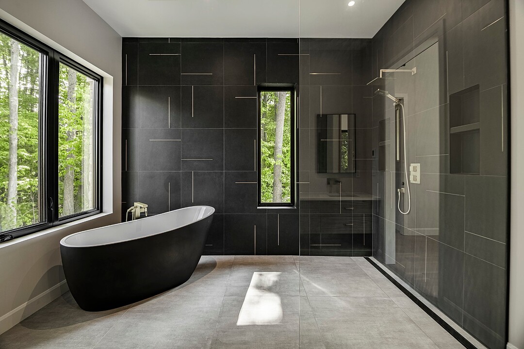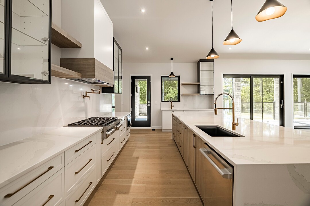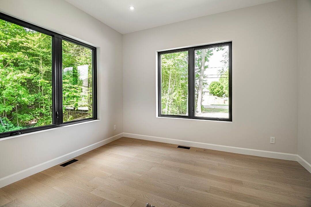 La suite des maîtres constitue un véritable havre de paix avec une salle de bain inspirée d'un spa, dotée de planchers chauffants, d'une baignoire autoportante, d'une douche vitrée, d'un meuble lavabo double et d'un walk-in sur mesure. Le rez-de-chaussée comprend également deux autres chambres à coucher, une salle d'eau, un bureau et une salle de lavage avec laveuse et sécheuse LG.