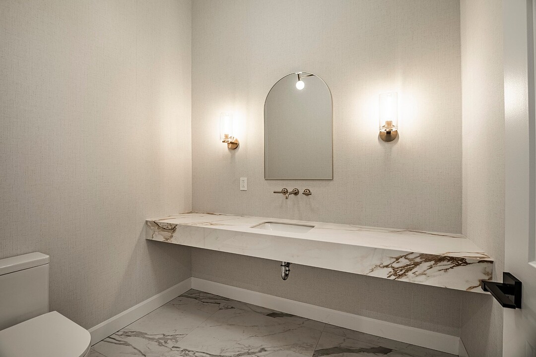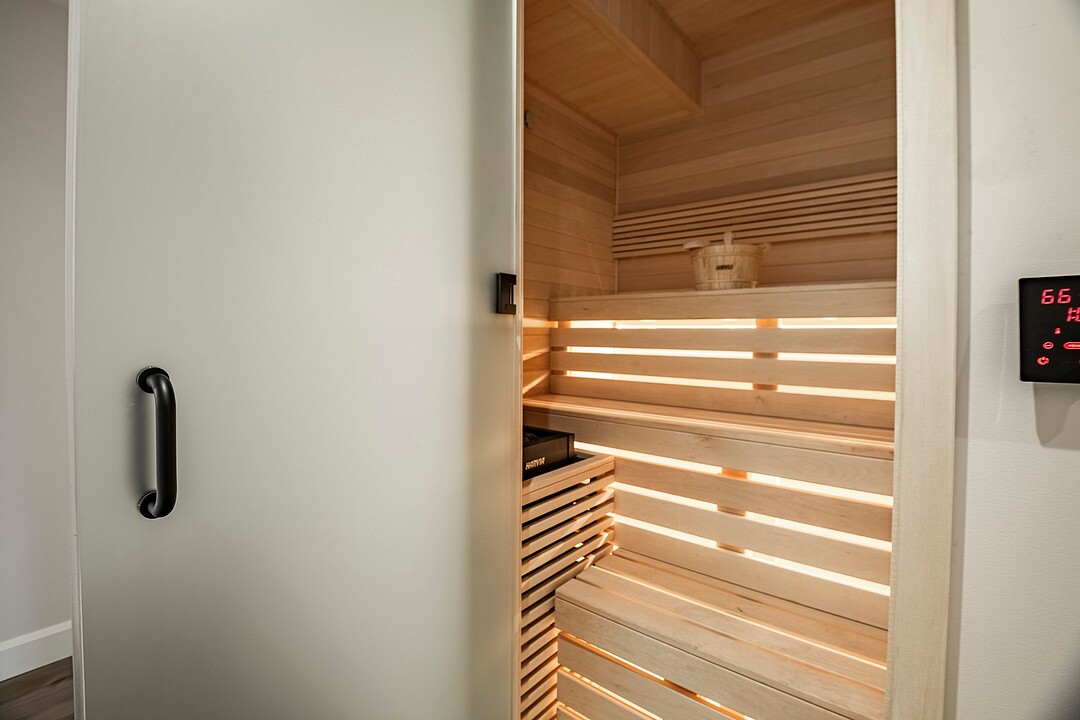 Le sous-sol entièrement aménagé a été conçu pour le divertissement et le bien-être et comprend une vaste salle familiale avec foyer au gaz et un bar, un cinéma maison, un gym, un sauna et trois chambres à coucher supplémentaires desservies par une salle de bain complète.