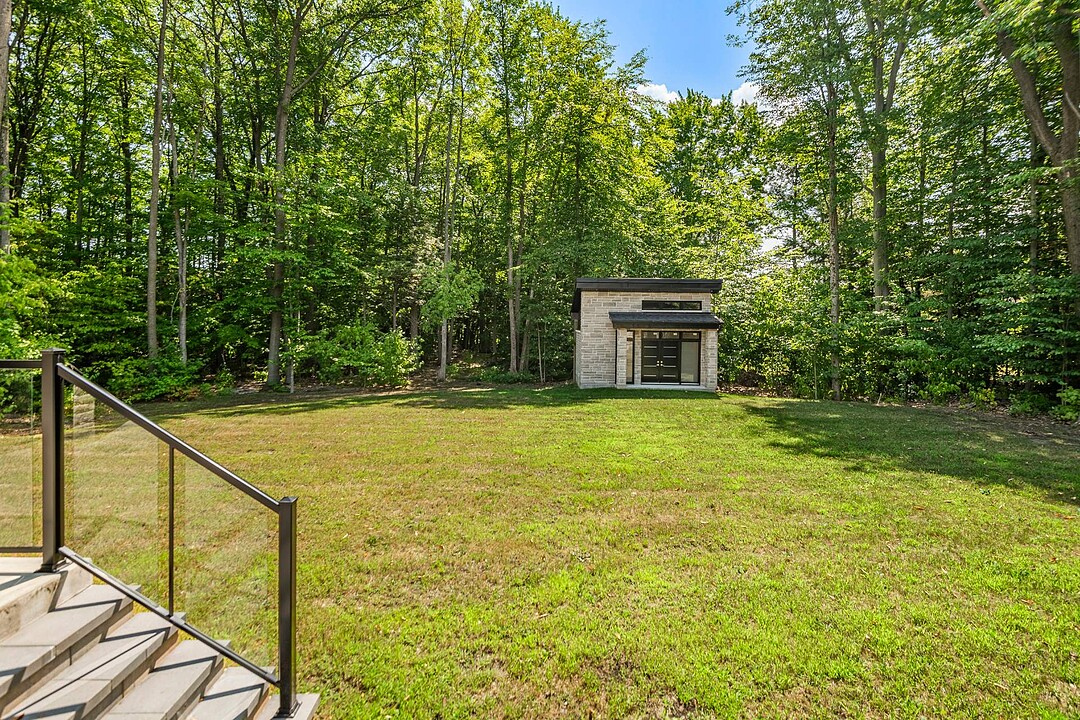 L'immense cour arrière prolonge l'espace de vie à l'extérieur et offre un potentiel infini pour recevoir, se détendre ou créer une oasis privée. On y retrouve également un cabanon avec électricité, une salle de bain avec accès extérieur ainsi qu'un garage double chauffé muni de deux bornes de recharge pour véhicules électriques.