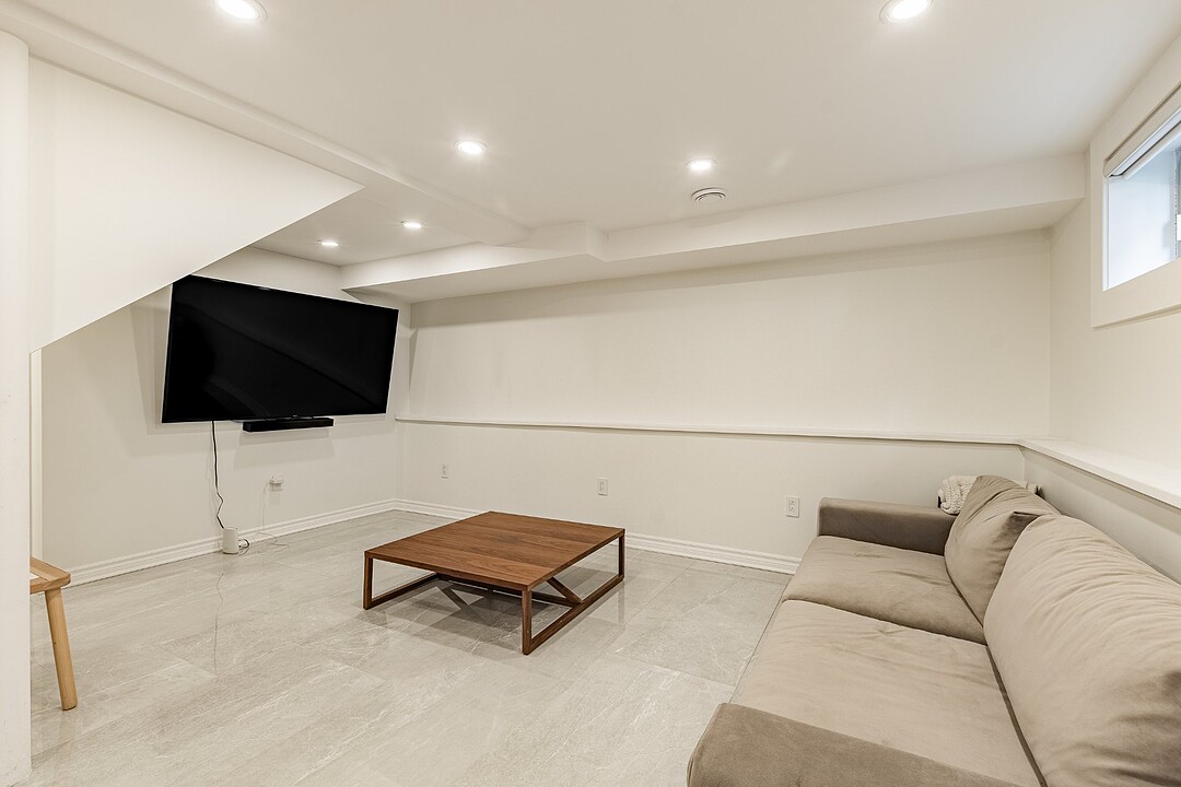 Le sous-sol entièrement aménagé offre encore plus d'espace avec une grande salle familiale/de jeu, une salle de bain complète et de l'espace de rangement supplémentaire. Qu'il soit utilisé pour des soirées cinéma, une aire de jeu pour les enfants ou un gym, ce niveau s'adapte facilement à vos besoins.